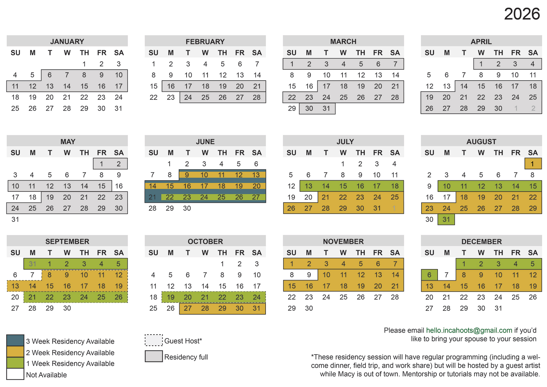October 1 deadline: for residencies taking place from June to December of 2026. Application period is August 27 -October 1, 2026.